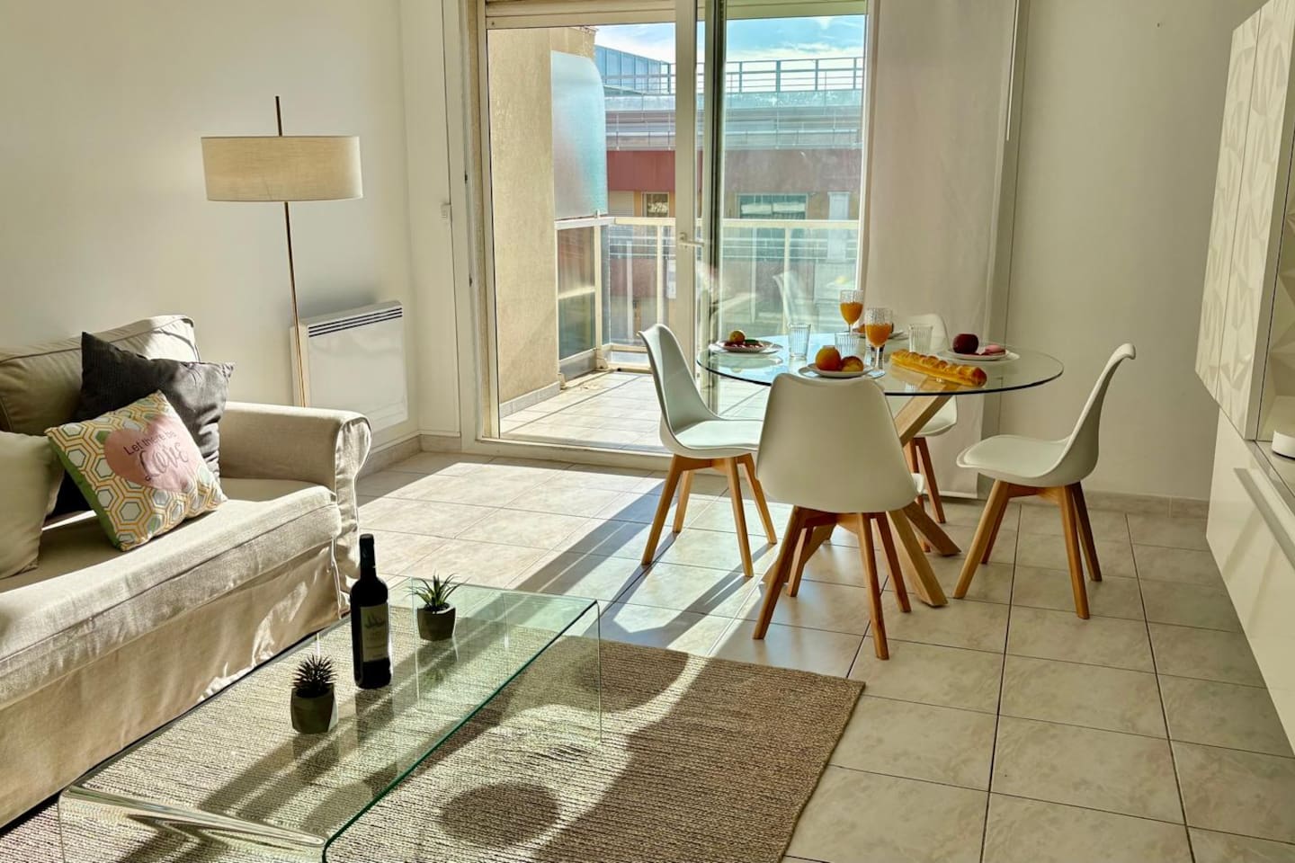 Très bel appartement tout équipé, avec wifi, climatisation, lave-linge, lave-vaisselle et place de parking privée Cet appartement peut accueillir jusqu'à 4 voyageurs (1 lit double dans la chambre parentale et 1 canapé-lit dans la seconde chambre). Situé à 5 min à pieds de la gare SNCF de Juan-les-Pi...